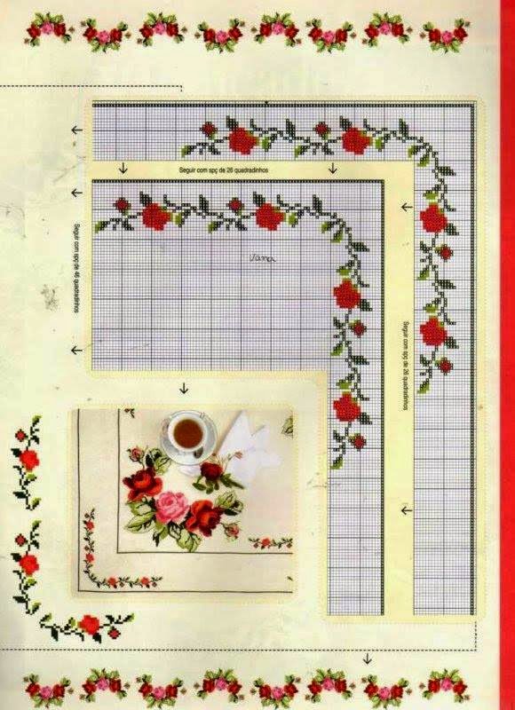 Gráficos de Flores - Muito bom para bordar toalhas de mesa, caminhos, centros de mesa, toalhas de banho, rosto e lavabo, jogos de banho